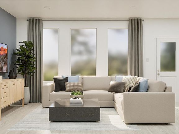 The Joplin - This single-story home shares an open layout between the kitchen, nook and family room for easy entertaining, along with access to the covered patio for year-round outdoor lounging. A luxe owner's suite is in a rear of the home and comes complete with an en-suite bathroom and walk-in closet. There are two secondary bedrooms at the front of the home, ideal for household members and overnight guests, as well as a versatile flex space that can transform to meet the homeowner’s needs. Prices, dimensions and features may vary and are subject to change. Photos are for illustrative purposes only. Estimated completion December 2025