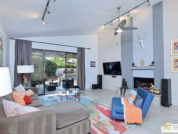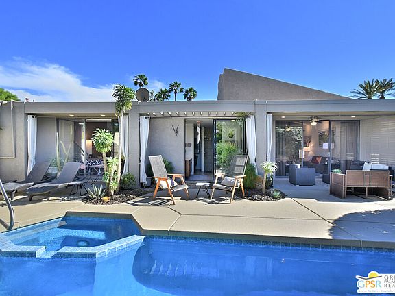 Sundance Villas is the perfect place to call home AND generate additional income through Short Term Vacation rentals! Both the City and the HOA allow STRs (with Permit) and this low-maintenance home with its own private pool and spa, 2 large bedrooms each with private bath (plus a powder room), indoor laundry AND attached 2-car garage is ideal for the Palm Springs lifestyle. Located in a gated community, the remodeled interiors of this home feature vaulted ceilings, a fireplace, wet bar and separated dining area. The kitchen has granite counter tops and updated appliances, AND those western mountain views from your walled pool/spa yard are simply outstanding! Additionally, the home has newer air conditioning with infrared air purification, pool equipment, sliding glass doors, and landscape lighting. The HOA Assessments for the newer roof, exterior paint and landscape have been paid in full! There is a leased solar panel system with Sunrun Solar at approximately $180/month that offsets almost all the annual electrical use. Sundance Villas has private tennis courts as well as a large dog park. This home is an active and very successful short term rental, so showings will have to be scheduled. These homes seldom come on the market so don't delay.
