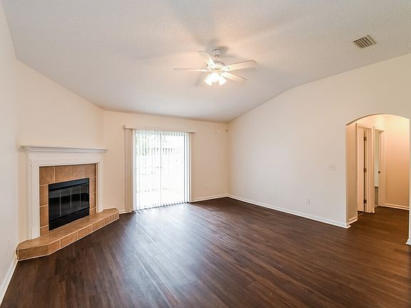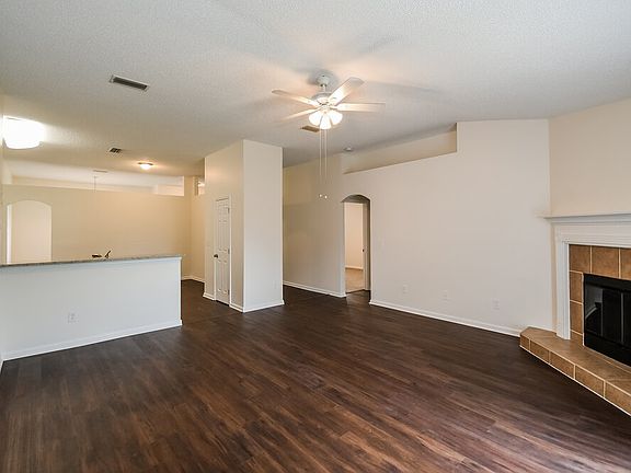 You'll find an eye-popping five bedrooms and three bathrooms in this 2,336-square-foot Cove Springs rental home. Step into the foyer and find the dining room on the right and the den on the left. Then walk up to the kitchen with its stand-alone pantry, island with a breakfast bar for casual meals, beautiful counters, and stainless steel appliances. Keep warm by the living room's corner fireplace and step through its glass doors to the backyard. You'll be amazed by the spaciousness of both the main bedroom and its en suite bathroom. This en suite has two walk-in closets, a walk-in shower, glamorous soaking tub, and dual sink vanity. Don't wait to apply to this amazing home.