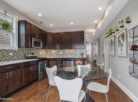 Spectacular two-unit building in an ideal Logan Square/Avondale Location! This recent, total gut rehab offers two spacious, duplexed units which is a highly desirable and extremely rare configuration! The 1st-floor duplex down offers 3 Bedrooms + Den, 2 updated bathrooms, hardwood floors and an oversized attached deck providing easy access to a wonderfully maintained yard! The lower duplexed level features great ceiling height, new tile floor, an additional living room, two of the additional 3 bedrooms, a full bath with glass shower door and in-unit laundry! The 2nd-floor unit currently serves as the owner's residence and features three bedrooms, one bath, in-unit laundry, hardwood floors throughout and a spacious deck also with easy access to backyard. The amazing master suite is designed with a large walk-in, custom closet providing maximum storage. Both units offer bright and open kitchens with an abundance of counter space, stainless appliances, and enough room to easily accommodate a table for dining. The yard is perfect for pets, gardening, entertaining or relaxation. Newer two car garage built 2014! A charming and quiet tree-lined street with easy access to CTA, Blue Line, Expressways, as well as critically acclaimed dining, shopping and entertainment! A+ location that is attractive to a huge population of prospective tenants!