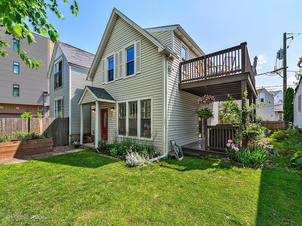 Modern updates mix with old world charm in this 2 bed/2 bath classic cottage on uniquely wide lot in Avondale. Located on a quiet one way street this cozy home offers a unique kitchen with white shaker cabinets, open reclaimed wood shelves, quartz counter tops and new fridge and ss appliances. Dining area opens to a covered raised patio overlooking ample green space perfect for outdoor eating and socializing. First floor bedroom includes custom built-in Murphy bed and leads to renovated bathroom showcasing painted cement tile floors, subway tile shower, built in reclaimed wood shelves & sliding barn door. Foyer with herringbone marble detail on floors and custom rebuilt stairway leads up to second level. Upstairs with new flooring features large open flex space perfect for a work from home office or work out space - where you can walk out to second floor sundeck that has recently been cleaned and sealed. A main bedroom with two closets for ample storage space and full a bath with new vanity complete the second level. Welcoming front, side and back yard includes a raised vegetable garden, planter boxes, a peach tree, & beautiful perennial foliage. Home also has new windows, washer, dryer, US Waterproofers Basement Seal with Warrant, and new Fiber internet line through AT&T. Just steps from several local breweries this area is a beer lover's paradise. And don't forget to stop for some food on the way! The original Kuma's, Honey Butter Fried Chicken. Ludlow Liquors & Parachute are all around the corner. Don't miss this opportunity to own your own home in one of Chicago's quintessential neighborhoods!
