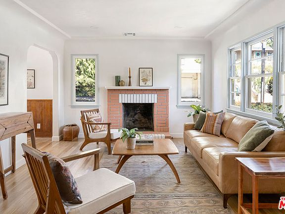 Settle in El Sereno with this bright traditional, beautifully updated to highlight the original details, and set on a generous and lush lot. The spacious living room is anchored by a decorative fireplace clad in terracotta brick; abundant windows bring in the sunlight, and the arched passthroughs and wood floors radiate elegance. The dining room is a charming setting for hosting, with wood wainscoting and a beautifully detailed tray ceiling. Three sunny bedrooms and a pair of stylish bathrooms make it easy to set up a home office or creative retreat. Meal prep is a breeze in the bright kitchen finished with quartz counters and stainless steel appliances. The expansive yard is an idyllic setting where you'll dine surrounded by mature trees and lounge while taking in the colorful sunsets. Amenities include a detached 2-car garage and a detached storage shed. Local favorites include Evil Cooks, Lil East Coffee, Secret Pizza, Don Too's, and El Sereno Green Grocer; the Ascot Hills Park trails are within easy reach, and you're a short hop to many shopping and dining options in happening Highland Park.