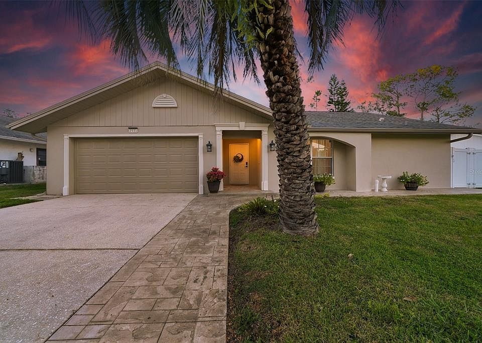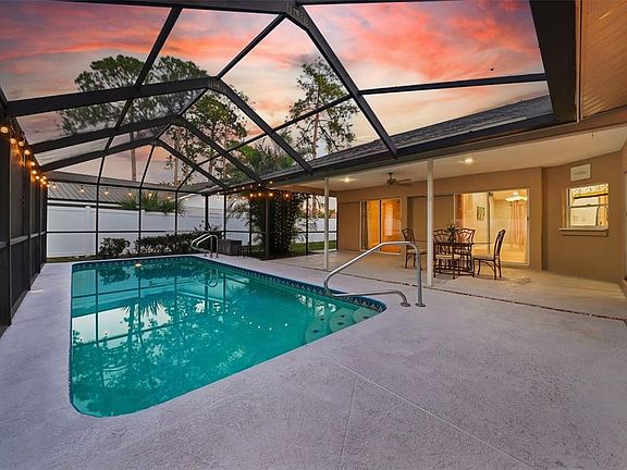 One or more photo(s) has been virtually staged. This fully renovated 3-bedroom, 2-bath split-plan pool home captures the best of indoor-outdoor living in one of Palm Harbor’s most sought-after neighborhoods. Step inside to discover the centerpiece of the home — a brand-new $35,000 gourmet kitchen showcasing sleek modern finishes: glass composite countertops and backsplashes, abundant counter space, and new LG smart appliances, including a large refrigerator, Wi-Fi oven, dishwasher, and a commercial-grade range hood with chimney. You’ll find vaulted ceilings in the living room, family room, and primary suite, all complemented by brand-new interior doors and luxury vinyl plank flooring with new baseboards throughout the main living areas, paired with porcelain tile. Every major system has been refreshed for your comfort and convenience: New roof & gutters (Feb 2023), new A/C (Mar 2023), and new electrical panel with whole-home surge protection (Jul 2025). Stamped concrete walkways (Nov 2023) and a 4-stage sprinkler system keep the exterior pristine, while keyless entry and an oversized two-car garage — plus a second full-size refrigerator — added everyday functionality. Best of all, this property sits in a no-flood zone for peace of mind year-round. Step outside to your private retreat — a deep saltwater pool surrounded by lush greenery and a fully fenced backyard with a double-door gate for boat or trailer access. Perfect for pets, entertaining, or simply relaxing under the pines. A private gate connects directly to the Pinellas Trail, offering endless opportunities for walking, running, or biking right from your backyard. Ideally situated near Highway 19, Curlew Road, and McMullen Booth Road, you’re minutes from Countryside Mall, Countryside Hospital, and top-rated schools. The Gulf beaches of Honeymoon Island are just 15 minutes away, with Tampa International and St. Pete–Clearwater airports within 20 minutes.