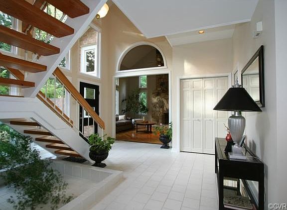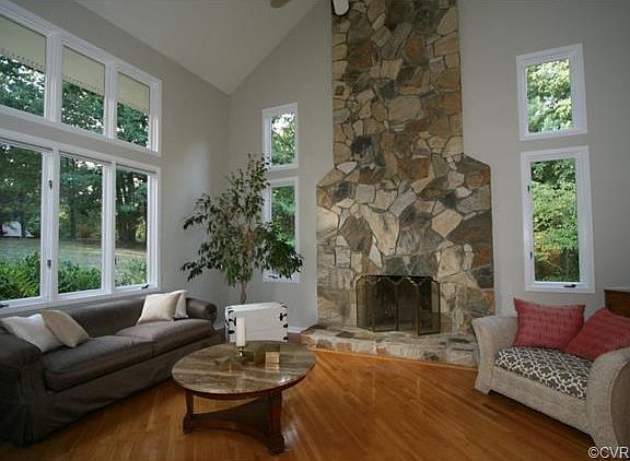 First Offer ever of this custom built contemporary home. Features small courtyard entrance that provides privacy for the wall of windows in the two story entrance hall. Large living room with vaulted ceiling and stone fireplace opens to family room with fireplace which then opens to deck. Central breakfast room with second door to deck opens to kitchen of real cherry cabinets, center island with seating and wet bar. Dining room completes flow back to entrance hall. Open tread staircase to second floor with master suite at one end and three bedrooms and two baths at the other. Special play space with Captain's ladder to third floor. Walk out lower level with huge rec room and a series of sliding doors to deck features a fireplace and enlarged sitting area. Includes new full bath and two storage rooms. Laundry room off kitchen with access to two car attached garage. Circular gravel driveway with granite curb stone edging and parking area outside garage. Private wooded lot with the old location of a train bed and a small seasonal stream, ideal option to kids playing with video games and watching TV. Great for entertaining or just being outside. Love where you live.