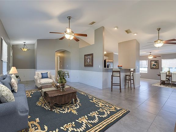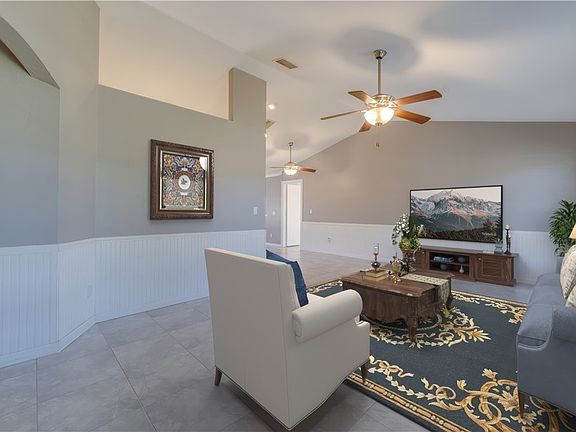 Welcome to this 3 bedroom 2 bath home located in popular SW Cape Coral offering great potential this home featuring tiled floors throughout, a screened front entry, a large, covered lanai and an open swimming pool. The backyard is fully enclosed with a black chain link fence (2023), proving space for pets and outdoor activities.