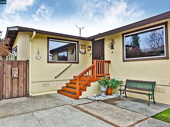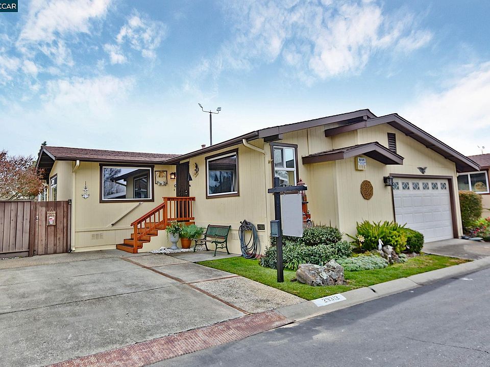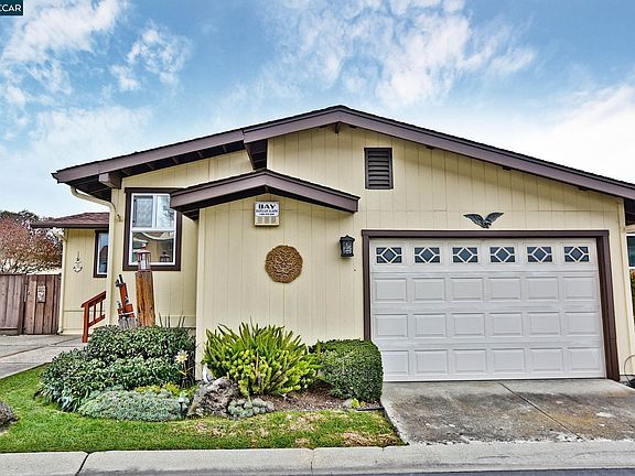 Located in a Senior Community (New England Village). This adorable 2-bed 2-bath, 1,500 sqft manufactured home comes with an attached oversized 1-Car Garage, rarely found in the Bay Area! Features include triple wide, vaulted ceiling with an open floorplan; updated kitchen with newer appliances, dual pane windows, newer furnace, a cozy covered Deck overlooking a private fenced yard, roll-up garage door w/ opener & Storage. Park amenities: pool and spa, main hall, billiard room, horseshoe pit and guest parking. One small pet allowed with park approval. One person on title MUST be 55+ Other occupants 18+