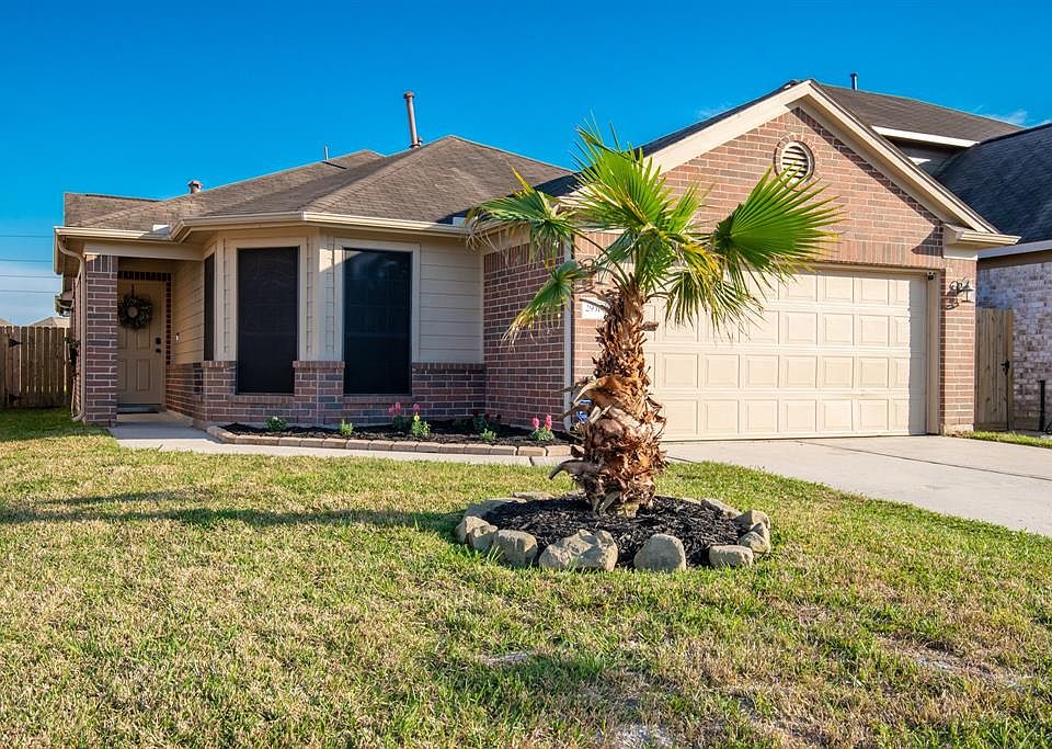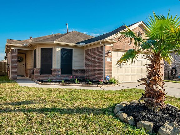 Forest Village three bedroom with no back neighbors! Brick exterior with bay window and private covered entrance backs to greenspace and overlooks an immaculate lawn. The built in alarm system/camera and recently replaced refrigerator will convey with purchase. Open floorplan with raised panel doors and 2 wood blinds throughout, features formal dining/study area, vaulted ceilings, arched windows and wood and tile floors. Large kitchen with vinyl flooring, tile backsplash, gas range/oven, 42 upper cabinets with lighting and a breakfast room with the sunny bay window. Adjacent is a spacious den with vaulted ceiling, large art niche, and upgraded fireplace with tile surround and remote control. Carpeted flooring in bedrooms and a large Owners suite with vaulted ceiling and a relaxing private bath. Fenced backyard with extended patio. Located within walking distance of the neighborhood Splash pad and Playground. Zoned to Conroe schools and convenient to I-45 North. Call today!