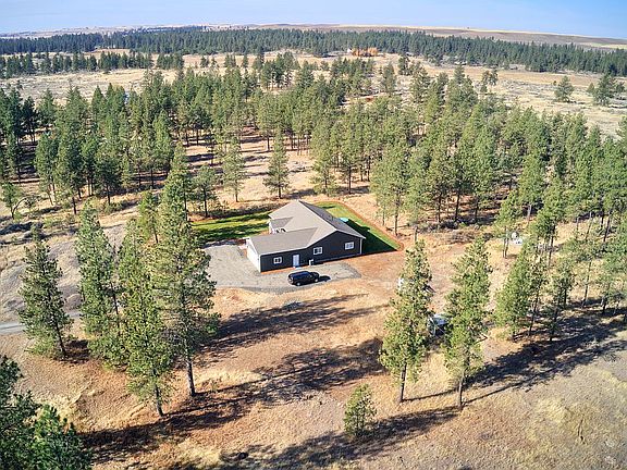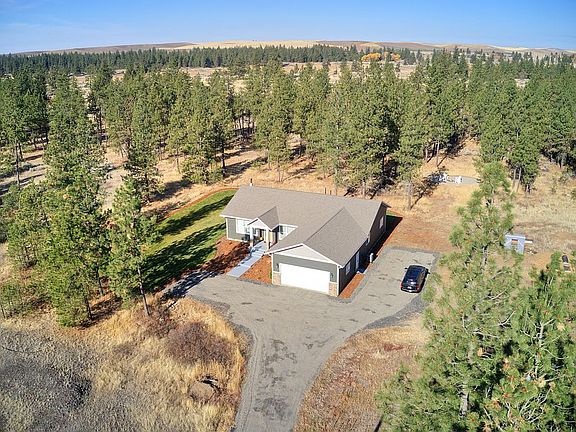 Welcome home to this beautiful rancher on 10 private acres! Lovingly built in 2015 w/open concept great room, 3 bedrooms, 2 bathrooms, library/office w/sliding barn doors, large kitchen w/custom concrete counters, beautiful wood cabinets w/slide out shelves, & walk in pantry. Wood burning stove, forced air heat pump/central AC. 720 sf heated/insulated garage. Master suite w/walk-in closet and ensuite bath. 25 gpm well. Easy 25 min commute to Spokane/Fairchild AFB. See drone footage. Ask about amenity list.