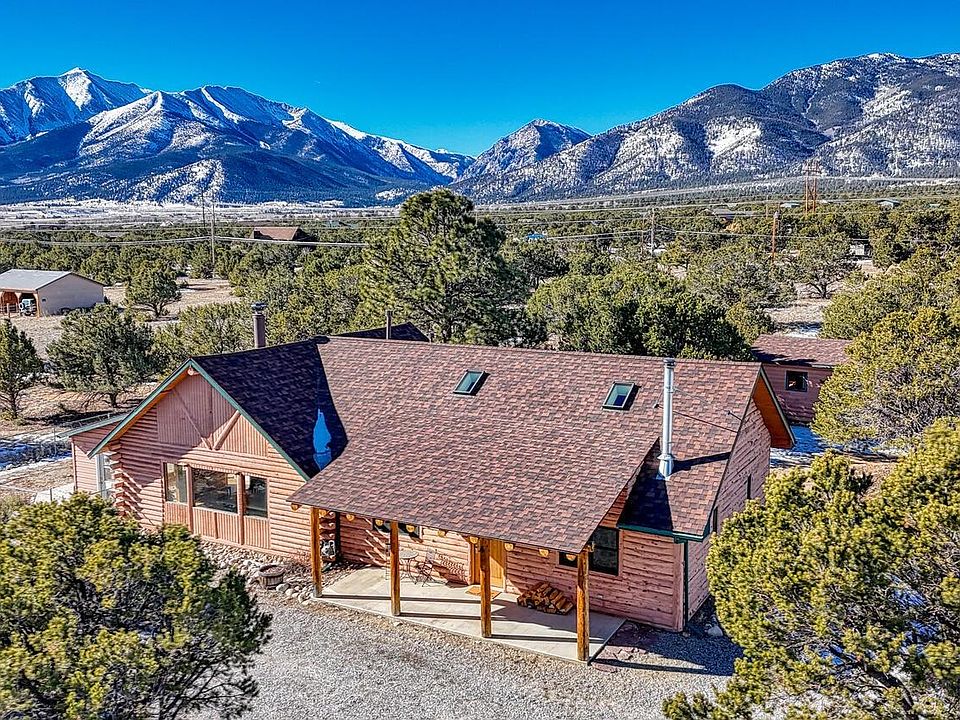 Exceptional Log Home on 4.9 Acres with Granite Counters, laminate floors and a 40 X 40 Workshop. Welcome to your mountain retreat! Nestled on a 4.9-acre treed lot in a prime location near downtown Buena Vista, this log home offers a perfect blend of rustic charm and modern amenities. With granite counters, laminate floors, natural gas, an open floor plan, a large primary bedroom, 1 additional bedroom plus an office, a new Rinnai natural gas heating system, a newer roof, a sunroom, stainless steel appliances, a pantry, vaulted ceilings, and so much more, this property has it all. Enjoy the privacy of the treed lot, the convenience of a circular drive, and the freedom of no covenants or HOA fees. This log home is ideally located just a short drive from downtown Buena Vista, offering easy access to shops, restaurants, and outdoor adventures. The kitchen boasts granite countertops, adding elegance and functionality to your culinary endeavors. The flooring throughout the home provide both warmth and durability. The open floor plan creates a welcoming and spacious living environment, perfect for gatherings and entertaining. In addition to the bedrooms, there is a dedicated office space, ideal for remote work or studying. The sunroom adds a delightful space for relaxation and enjoyment of the natural surroundings. Vaulted ceilings in the living area enhance the feeling of spaciousness and openness. The 40 X 40 workshop and garage provide ample space for hobbies, projects, and storage. Outside, you'll find a dog run, a storage shed, and a treed lot that offers privacy and tranquility. The circular drive adds convenience for parking and access. Enjoy the freedom of no restrictive covenants or HOA fees, allowing you to make the property truly your own. Don't miss the opportunity to own this exceptional log home with all the modern comforts and mountain charm you desire.