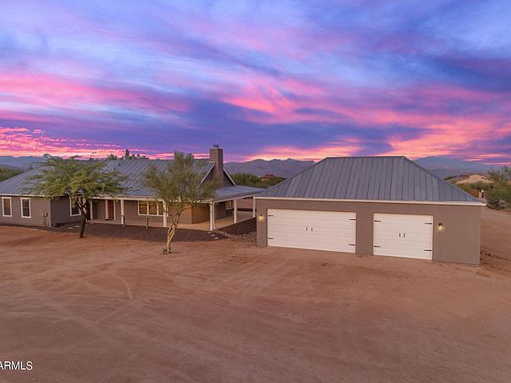 Some additional noteworthy aspects of the home include an oversized three car garage with plenty of room for storage, an on-site shared well (3 share) with new sub pump and a 6000 gallon above ground tank, main home AC unit that is only three years old. The surrounding natural landscape is dotted with mature mesquite and palo verde trees, cacti, and low maintenance rolling desert.