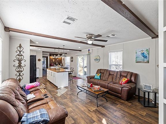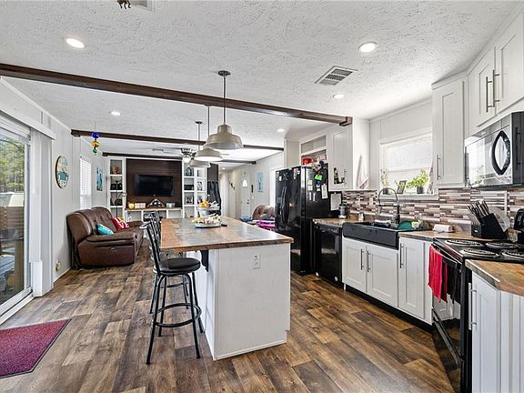 TUCKED AWAY! 3 Bedroom 2 bath luxury mobile home with great layout. Master bath with large soaking tube and separate walk in shower. Jack & Jill bath room between the other 2 bedrooms. Large living room and kitchen with sliding glass door looking out to the back yard. Nice back porch with jacuzzi over looking the wooded fenced in back yard.