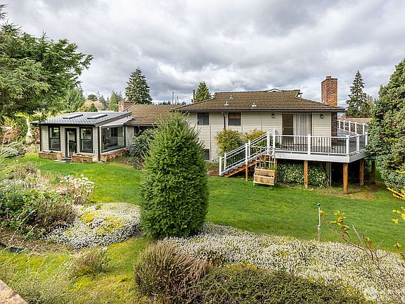 PRICE REDUCED! Puget Sound View home in the desired Marine Hills Comm. The home features 4bdrms, 4baths & many extras & updates throughout incl: New 2nd Chef's kitchen w/large Italian Forte Gas range/oven & sunroom w/built-in corner storage bench, updated baths, floors/carpets, new windows w/Water views, Farrow & Ball interior Paint imported from England (designers favorite), drapes/shades, skylights, A/C, New electrical panel, wrap around Trex deck w/stunning views of Puget Sound, 3 walk-in closets & more. Permitted Addition incl: New master bedroom w/Water views, sitting room & luxurious bath incl porcelain lined walk in shower. Add'l features: Custom built in bookshelf w/Visual Comfort picture lights. No HOA Dues. Move in ready. MUST SEE