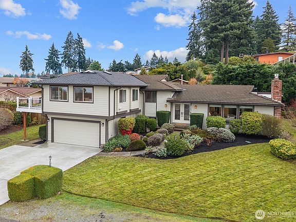Marine Hills view home—updated, versatile, and move-in ready with stunning Sound views and exceptional value. This beautifully refreshed home features new flooring, paint, appliances, electrical panel, AC, closets, deck, driveway, and renovated baths, plus an added (fully permitted) bedroom suite. The flexible floorplan includes a main kitchen and a prep kitchen, perfect for entertaining, multi-gen living, or extended stays. Sunlit living spaces with custom built-ins open to a large deck and landscaped yard. Conveniently close to Redondo Beach, the Des Moines Marina, parks, shopping, and commuter routes. A rare opportunity to enjoy space, views, modern updates, and unmatched value in Marine Hills. Call for a private showing today.