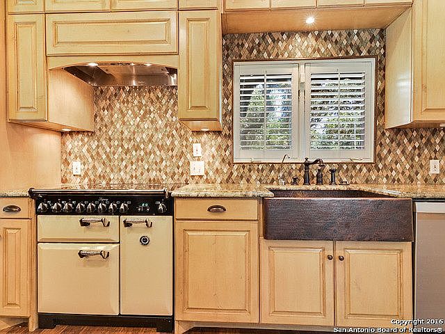 Sparkling poolHot tubMajestic oak treesOutdoor kitchenInviting courtyardResort-like backyardOversized granite island