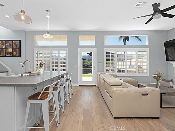 Welcome to this gorgeous, spacious home featuring four bedrooms plus a versatile upstairs loft, ideal for a playroom, study area, or additional family lounge. Designed with both comfort and functionality in mind, this home offers one bedroom conveniently located downstairs, while the three additional bedrooms and loft are upstairs for enhanced privacy. Step into the inviting, light-filled living room that seamlessly flows into the dining area, featuring elegant built-ins perfect for display and storage. The completely redesigned kitchen is a showstopper, offering a modern, open layout ideal for entertaining, with a clear view into the cozy family room with a fireplace perfect for gatherings year around. Upstairs, retreat to the primary suite, your personal sanctuary, complete with a spa-like bathroom and a balcony overlooking stunning views and the beautifully landscaped yard. The secondary bedrooms are spacious, providing ample room for family, guests, or a home office, while the laundry room is conveniently located upstairs for daily ease. Step outside to your dream backyard, situated on one of the best lots in this gated community, featuring a sparkling pool, relaxing jacuzzi, built-in barbecue, and multiple entertaining areas perfect for family gatherings, summer parties, or quiet evenings under the stars. This home is designed to maximize lifestyle and comfort while providing exceptional spaces for both relaxation and entertaining, all within a secure and beautifully maintained community. This home also features paid off solar panels!