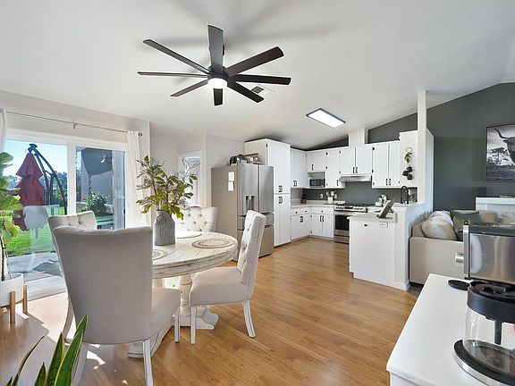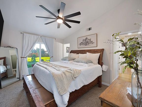 Welcome home to this beautifully updated 4-bedroom, 2-bath single-story residence in the heart of Live Oak, offering 1,359 sq. ft. of stylish comfort and modern upgrades. From the moment you arrive, the inviting curb appeal and widened driveway set the tone for the attention to detail found throughout. Step inside to an airy, open layout with vaulted ceilings and abundant natural light. The kitchen features crisp white cabinetry, stainless steel stove and dishwasher (2025), a new sink, and gleaming countertopsperfect for both everyday living and entertaining. Three sliding glass doors create a seamless indoor-outdoor flow, leading to a spacious backyard with irrigation and fruit trees. Recent improvements include new stucco, windows, sliding doors, paint, and interior/exterior doors with updated knobs and hinges (2024-2025). Comfort is ensured with a 2022 HVAC system, new carpet, ceiling fans, and modern bathrooms with new toilets. Smart home features like Ring cameras and doorbell (2025) add peace of mind. This move-in-ready gem combines thoughtful upgrades, timeless design, and a prime location ready for you to call home. Clear Pest and 3 Year Roof Certification Provided.