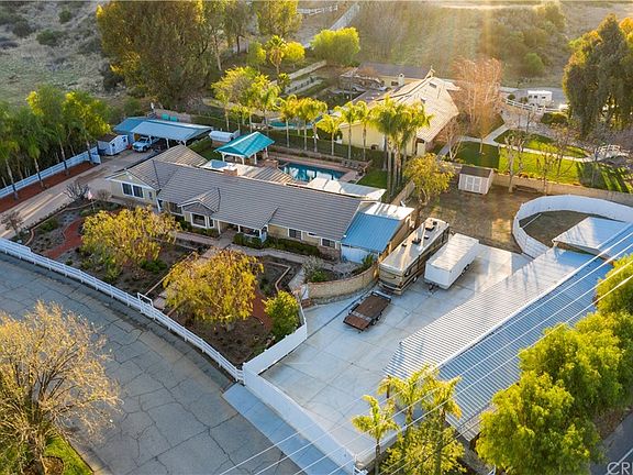 SPRAWLING SINGLE STORY CUSTOM RANCH HOME BEHIND GATES IN HASLEY CANYON... This turn key home is one of a kind, and 1 of only 2 homes on the street. Dual gated entrance provides multiple vehicular access locations, w/ tons of paved space for 10+boats, RV's, etc. This unique property is located JUST far enough in the canyon to maintain full cell service, internet, while offering paved roads, public water, gas connection! This property offers covered carports, and a one of a kind custom 6 car dream garage featuring its own commercial HVAC, 220v hook ups, custom lighting, insulation, and epoxy floors! The property also offers complete horse facilities (currently not being used), including arena, tack room, corals, and wash rack. This beautiful home offers hardwood flooring throughout that wraps around the open floorpan and into the kitchen. The kitchen offers granite counters, stainless steel appliances, and tons of cabinetry. Just off the kitchen lies the large laundry room and full pool bathroom with direct access to the backyard and pool / BBQ areas. This beauty also offers a full game room, with billiards, TV, and adjoining theater area with large French style doors that open up to the outside. All bedrooms and remaining bathrooms are on the other side of the home separating living space from entertaining space. The backyard offers HUGE pool / spa, grass area, and outdoor kitchen w/ TWO huge built in BBQs, granite counters, etc. All of this w/ NO HOAs or Mello Roos...