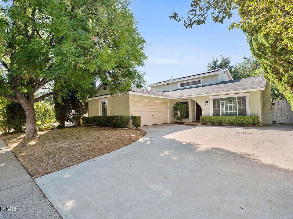 Wonderful Hillrise 2-story pool home offering a desirable floorplan with 4 bedrooms - 2 masters (1 up and 1 down), and two secondary bedrooms downstairs. 2.5 baths (2 down and ½ bath upstairs), 2068 sq. ft of living space, and sitting on a prime 6967 sq. ft. lot on a cul-de-sac street. Features include engineered wood flooring, sweeping vaulted ceilings, recessed lighting, plantation shutters, ceiling fans, a fireplace in the living/dining room, a breakfast nook and granite kitchen with a breakfast bar, stainless appliances including a Kitchen Aid range and double oven with a griddle, a dishwasher, a microwave, dark wood shaker-style cabinetry, a stainless sink with a view window to the backyard hosting a solid covered patio, and a sparkling pool. There is a master downstairs with a slider to the back, and a walk-in closet. Two thoughtfully designed secondary bedrooms, a laundry room with direct access to the 2-car garage finished garage with recessed lighting, epoxy flooring, load of built-ins and a sectional roll-up door. The upper floor offers a master suite with a large bedroom, a retreat room, a walk-in closet and a half bath. Other fine features include paid-for solar installed last year, dual paned windows and sliders, newer HVAC systems, smart Rachio irrigation system, upgraded electrical panel, wired for electric car charging station in garage, Nest climate control system, upgraded sewer mainline and more! Nestled in desirable Agoura Hills and convenient to award-winning schools, recreation venues, parks, hiking trails, shopping, restaurants and just a short distance to the 101 Fwy for the commuter. A must-see property!