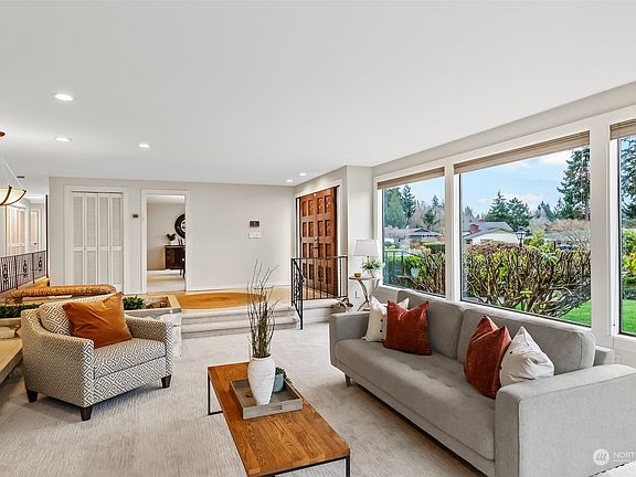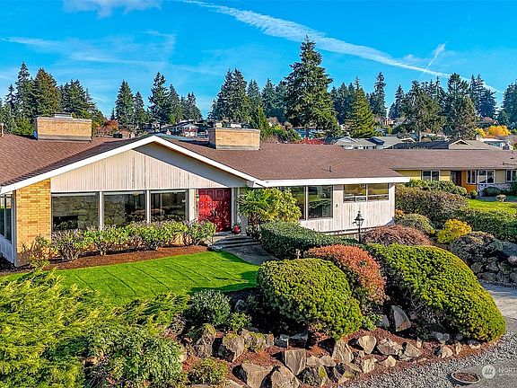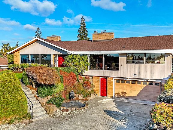Spectacular mid century modern in Marine Hills! Walls of windows showcase Sound views from your living room. Live large in over 5000 square feet, entertainment sized living spaces, three gas fireplaces, updated kitchen and baths on over 1/4 acre in the heart of Marine Hills. Four bedrooms on the main floor and room for more in the lower level, mother in law space or potential additional income. The updated lower level has spacious living areas, bar or kitchen with new cooktop to accommodate your guests. New bath down, more rooms and nonstop storage throughout the home. Newer roof, brand new furnace, new carpet and luxury vinyl plank floors, Upstairs laundry, good sized yard, hot tub, walk-in garden shed, air conditioning. Huge garage too!