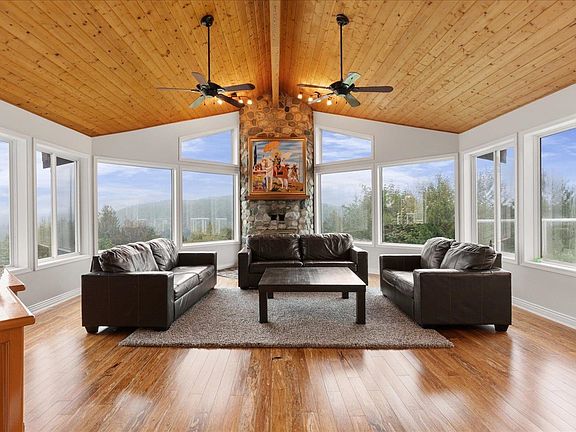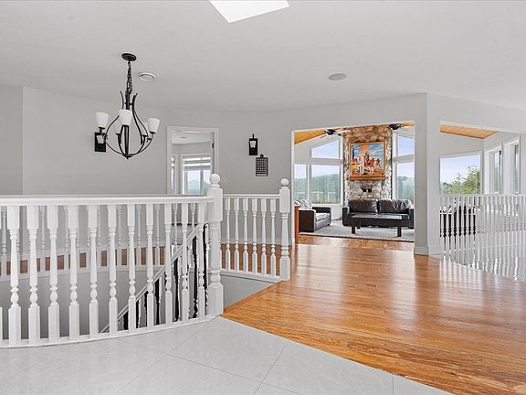 Panoramic viewsCustom rancherWalk-out basementRiver rock fireplaceSpacious kitchenHardwood floorsIn-floor heating
