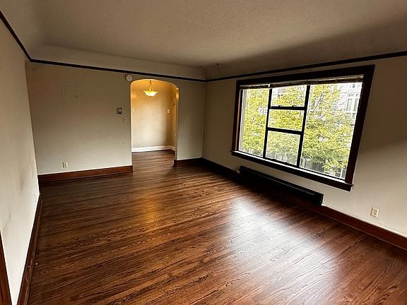 This 2nd floor 1 bedroom is less than a block from several main bus lines. The unit has 2 large closets, a spacious main room, a cozy bedroom overlooking 2nd avenue, and view of the Space Needle from both the living room and bedroom. Old world touches, such as arched entry ways and beautifully crafted wooden closet doors, give this apartment a vintage charm.