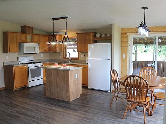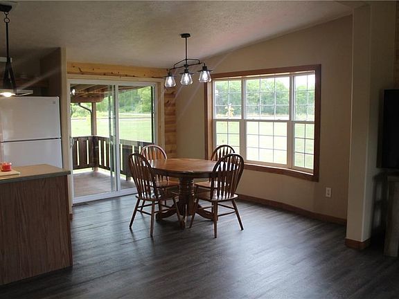 Well taken care of and updated property located in the country on 2.2 acres. Home features new vinyl plank flooring, all new appliances, new deck, new landscaping, open concept living room/dining/kitchen. Large master bedroom with master bath. Shed/garage is heated and has built in workbench and cabinets, attached lean to on the back for additional storage. There is an additional garden shed and even an outhouse! This is a great country home and easy to get to the twin cities or Eau Claire.