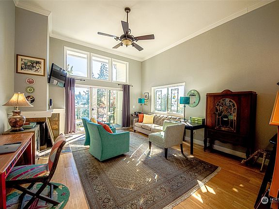 Affordable living at Mercer Island? It is indeed w/this outstanding SE corner 1 bed/1 bath at the Island Habitat. Superb location coupled with beautiful upgrades make this a very desirable place to call home. Marvelous kitchen with updated cabinets, granite counters, contemporary lighting, stainless steel appliances & a pantry. Bamboo floors in living areas plus slate in entry & by slider. High ceilings w/crown molding lend an airy, spacious feel to this East-facing home. Extra window on South wall means more sunlight year-round…covered deck includes storage & features a view of the lake. Includes covered parking spot! No rental cap & pets are welcome. Clubhouse w/exercise equipment just steps away. W/D in unit & laundry rm downstairs.