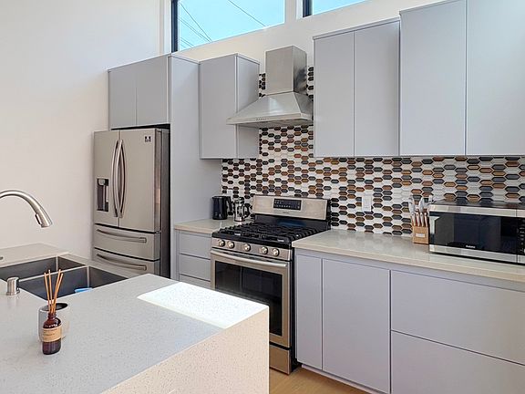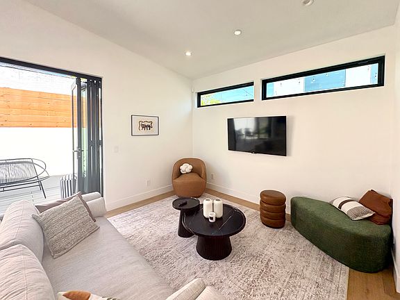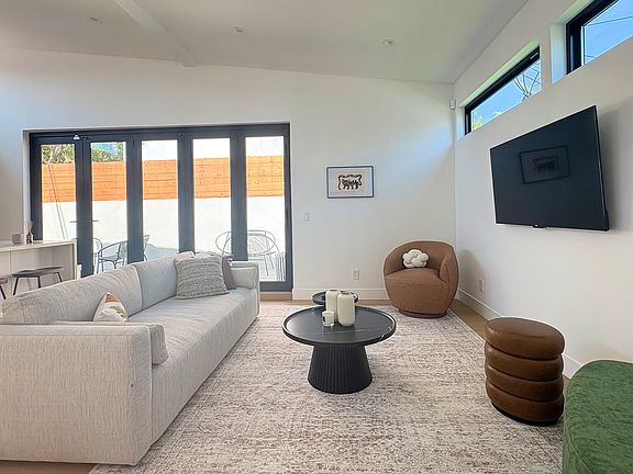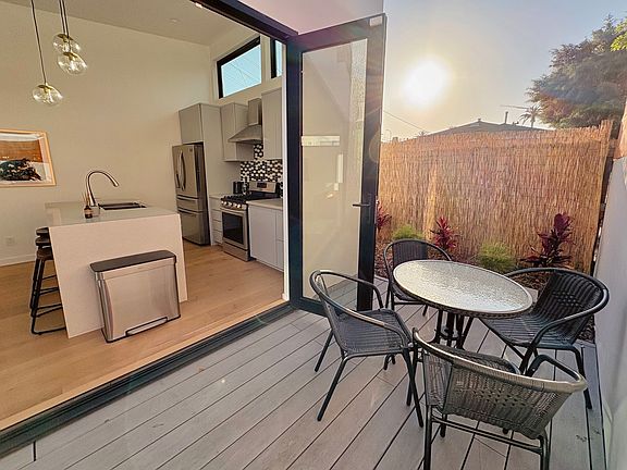 Newly built in 2019, this light-filled home was designed for maximum privacy and features high ceilings, an open concept living room-kitchen with a wall of ceiling-to-floor French doors that open out onto an entirely private patio, perfect for embracing LA's gorgeous weather.