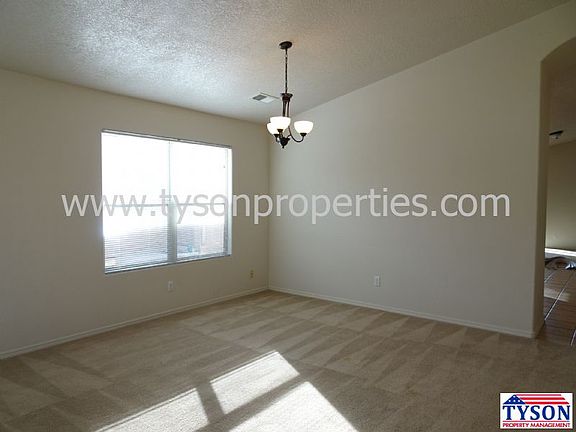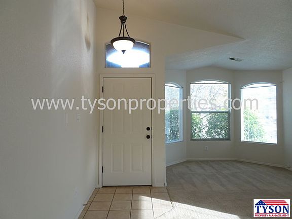 This spacious home features a formal living and dining room and an open kitchen with an island that overlooks the den with a cozy fireplace. The master bedroom features a large walk in closet with plenty of built in shelves. Master bathroom has a garden tub with stand alone shower. Home features large fully landscaped backyard with grass and xeriscape & a covered patio.
