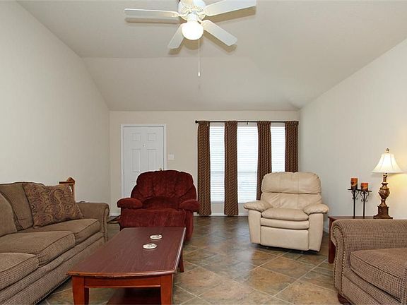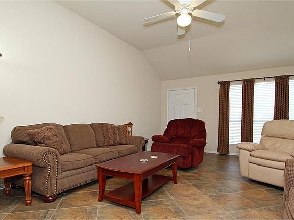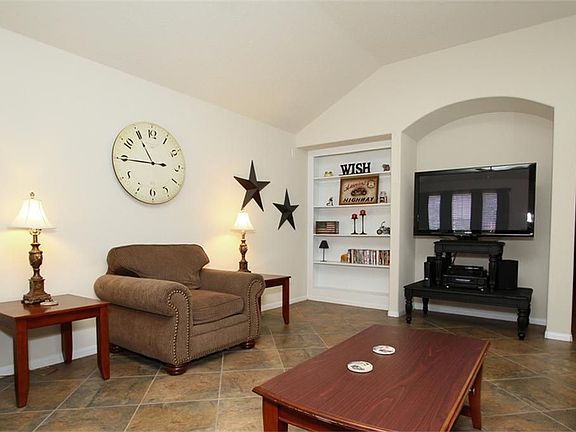 Upgrades that make this one a WOW - from the 18'' diagonal tile floors throughout the living, kitchen & baths, upgraded appliances, ceiling fans in living & all bedrooms, pergola in fenced backyard for shade. 8' gate off green belt for access to yard. TV alcove & built-in bookshelves in living room. Double pane windows with blinds. Come see the value!