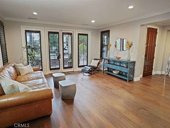 Step inside to discover an atmosphere of elegance, highlighted by soaring ceilings, refined crown molding, and rich hardwood flooring that create a warm and inviting ambiance. The formal living room, accented by French doors that open to the front patio, flows seamlessly into a grand dining area—perfect for entertaining.