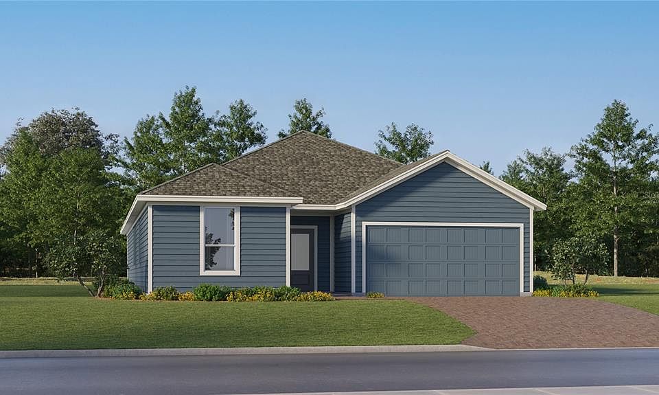 Under Construction. This popular new Hendrix is a four-bedroom home with convenient single-story living. Three secondary bedrooms are located near the front of the home off the foyer, near a versatile flex space ready to be used as an office or studio. An open-concept floorplan blends the kitchen, living and dining areas with easy access to a covered patio, while a luxe owner’s suite is nestled into a private rear corner, providing direct access to a full bathroom with dual sinks and a walk-in closet. Each home comes with Lennar’s Everything’s Included® promise, which includes new appliances as well as quartz countertops, blinds, and more in the price of your home. Wellness Ridge is one of the most modern and anticipated new communities. R19 insulation is used to provide a quiet, comfortable and highly energy efficient home. LP Siding provides durability and impact resistance for your beautiful Florida home. Welcome to Wellness Ridge the community that was designed to provide a Healthy & Active Lifestyle!! Community Features include: Sports Courts, Clubhouse, Fitness Center, Conservation Areas, Playground, Resort Style Swimming Pool and Multi-Use Trails. This beautiful home is very close to Lake Louisa State Park. Clermont is one of the fastest-growing cities in Central Florida. Strategically located close to Orlando and theme parks, it is known for its picturesque hills and pristine lakes. Schedule your appointment today!