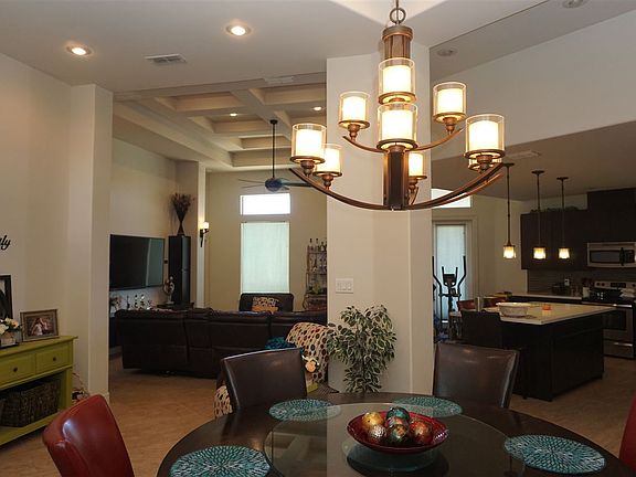 Beautiful home 3/2/2 with quartz counter tops, decorated ceilings, custom blinds, walk in closet, open rear porch and custom entry door.