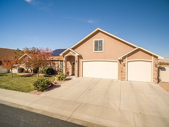 This beautiful home features 5 bedrooms, 3-full baths, open/split-floor plan, with custom finishes.. Home has central Air Conditioner and leased Solar. Nice lay out that feels larger than the sq footage suggests. Lot's of upgrades including upgraded kitchen appliances, new hard surface flooring throughout with carpet in the bedrooms. 3 bedrooms on first level with large master suite on first floor. 3-car garage, ample RV parking and a nice shed. Manacured back yard, nicely landscaped with sprinklers and irrigation, fully fenced and 2 patios areas. Located on a quite cul-de-sac street.