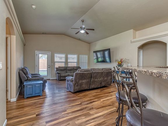 This lovely ranch style 3 bedroom home with office has plenty of space to offer with it's vaulted ceiling and open flowing floor plan. The office can also serve as a 4th bedroom. The kitchen features a double range oven, updated backsplash and is great for entertaining. Living room is showcased with beautiful hardwood floors and three large windows bringing in plenty of natural light. Large master bedroom includes a 5 piece master bathroom with walk-in closet. The yard provides more than enough room for children to play, barbecues, or just relaxing under the covered patio. Storage shed included to tuck away yard supplies. 3 car garage allows space for recreational vehicles, workshop, or gym plus extra parking on the side of the house.