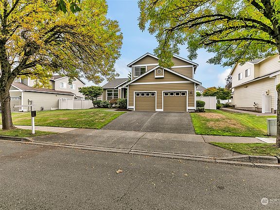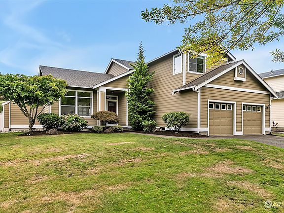 This beautifully maintained 2640 SF home w/ 4 beds & 2.5 baths sits on a quiet dead end street. Inside, find the formal living room w/ gas fireplace, office/den (possible 5th bedroom), dining room & family room w/2nd fireplace. Kitchen features a center island, pantry & breakfast nook leading to the backyard. Don't miss the recently updated laundry room & 1/2 bath! The primary bedroom has a large 5-piece ensuite w/ mountain views & walk-in closet. Newer carpet, fresh paint & window treatments throughout. Stay cool in the summer w/ AC! Outside, enjoy a 2-car garage, fully fenced backyard w/ easy-care landscaping, gardening shed & expansive deck+concrete patio. Walking distance to downtown Enumclaw, shopping & schools!