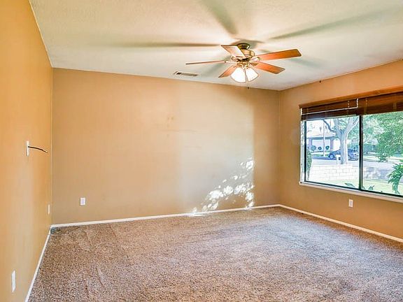 Great Opportunity on this Adorable 3 Bedroom 2 Bath Single Story Home. Home Features Kitchen that is open to Family Room and has Granite Counter-tops, Black Appliances including stove, dishwasher, microwave, and Yes..Refrigerator is included! Home Features Living Room, Separate Family Room, Eating Area off of Kitchen and Family Room. Family Room contains a Relaxing Fireplace and Slider to The backyard Relaxing patio and Alum-a-Wood style Patio cover. The Master Bedroom has a Master Bathroom with Tub & Shower. Additional Features include Ceiling Fans in Rooms, Window Blinds, 2 year old carpet, 2 Car Garage, and nice backyard. Located near parks and elementary school and easy access to Freeway.