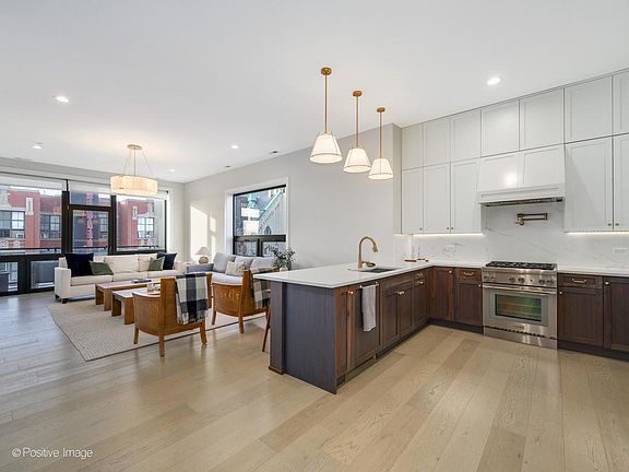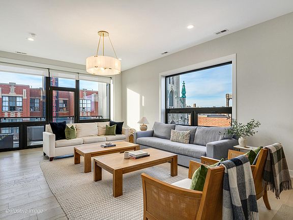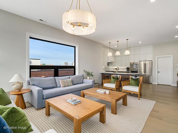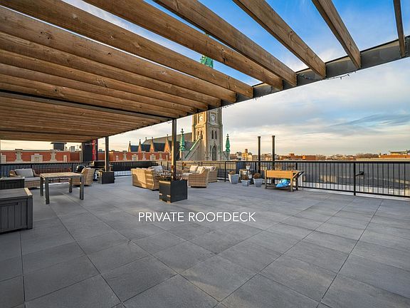 Experience luxury living in this exceptional penthouse condo, located in a newer construction elevator building in Lakeview. This residence offers a spacious, thoughtfully designed floor plan with timeless finishes and multiple outdoor spaces, including an expansive private rooftop deck boasting breathtaking architectural views. Step into a welcoming entry foyer that leads into an open layout featuring distinct and well-proportioned living and dining areas, bathed in natural light. As a top-floor NW corner unit, this home offers unparalleled views. The chef's kitchen is a true highlight, equipped with Thermador appliances, a blend of warm wood and white two-toned cabinetry, double-stacked cabinets for ample storage, a full-height stone backsplash, a convenient pot filler, and a large island perfect for entertaining. Adjacent to the dining area, a custom bar with Thermador wine fridges, additional storage, and display shelving elevates the space. The living room features a sleek fireplace and opens to a covered deck, ideal for morning coffee or evening cocktails while watching the sunset. The primary bedroom retreat includes automated Roman shades, a spacious walk-in closet, and a spa-like bathroom featuring a double-sink vanity with a marble countertop, heated floors, and classic tile for an added touch of elegance. Bedroom 2 offers flexibility with a custom-built Murphy bed, walk-in closet, and en-suite bath. The third bedroom is also generously sized and has an adjacent full bath. Head upstairs (or take the elevator) to the impressive private rooftop deck, complete with a custom pergola. This outdoor oasis offers captivating views that create the perfect backdrop for both daytime relaxation and evening entertaining. This home is perfectly located, with easy access to coffee shops, restaurants, grocery stores, and retail, all within walking distance. One garage space and additional storage are included with the unit.