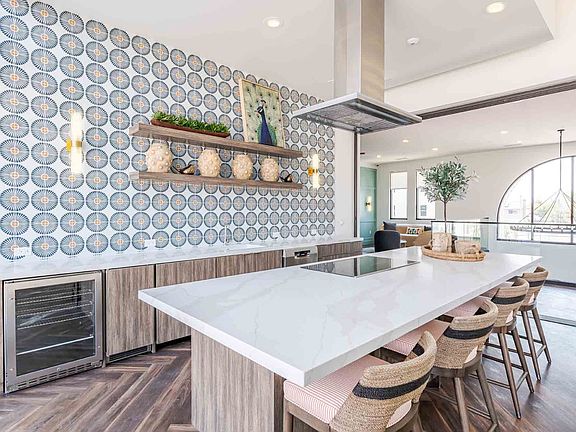 - Exterior features: "Party in a Box" Event Planning, 1, 2, & 3 bedroom apartments and townhomes, Bike Repair, Conference Room, Designer kitchen and quartz countertop, EV Charging Stations, Energy efficient Stainless steel appliances, Golf Simulator & Putting Greens, High-speed Internet Ready, On-Site Maintenance, Oversized bedrooms and closets, Package Receiving, Spacious layout up to 1356 Sq.ft.