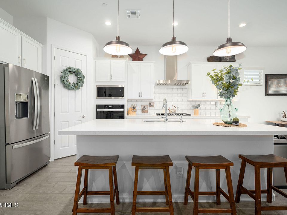 Your next chapter begins in this beautifully finished Peoria home, perfectly positioned just minutes from Vistancia. The backyard opens to wide, open space, giving you extra privacy and a calm, peaceful setting to unwind from this single-level residence. Inside, you'll find 3 bedrooms, 2.5 baths, and a 3-car garage. The Primary Suite feels like a true retreat with its spacious tiled walk-in shower. The kitchen features bright white cabinetry, sleek quartz countertops, and a layout that's perfect for entertaining, whether you're hosting friends or enjoying everyday family time. The Sereno community is nestled against a mountainside backdrop and offers quick access to top dining, shopping, and entertainment. With Loop 303 just minutes away, commuting to I-17 and I-10 is easy and convenient.