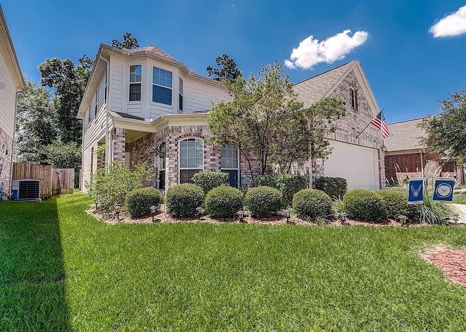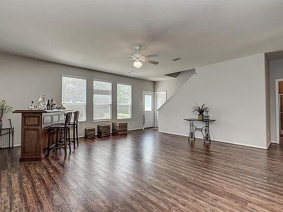 Great family home in peaceful community! Home features laminate wood floors thru-out (no carpet), fresh interior paint, bedroom and full bath down, sunny breakfast room, kitchen with built-in microwave, gas range, and solid surface counters, alarm system, formal dining, great game room up, master with his and hers closets and separate tub and shower, sprinkler system, fenced backyard with patio, radiant barrier in attic, and much more! Walking distance to the splash pad & park! Come see this one TODAY. NO FLOODING ISSUES!
