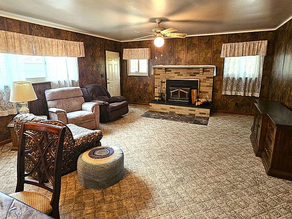 Spacious 3-Bedroom Ranch on a Beautiful Park-Like Lot! This home offers easy one-level living in a prime location near shopping, restaurants, and freeway access. The large family room with a natural fireplace opens to a roomy kitchen and dining area, perfect for entertaining or relaxing. The primary bedroom is set apart for added privacy. Enjoy two enclosed porches, one in front and one on the side, ideal for morning coffee or evening unwinding. Energy-conscious buyers will appreciate the solar panel system designed to help offset heating costs. A 2-car garage with an opener adds convenience, and the seller is also offering a 1-year home warranty! Furniture in the home can stay or go.