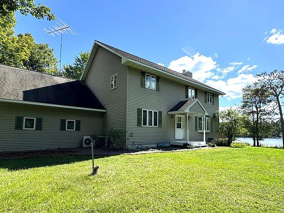 Wow! Look at what all this amazing property has to offer! 11.97 acres and 150’ of shoreline on beautiful Jenkins Lake. This private lake has no public access, offering more privacy than most and is definitely a treasure for those seeking a quiet up-north home or getaway to relax and rejuvenate! You will enjoy the amazing lake views, large yard, concrete patio and the additional acreage across the street. The bonus here is a NEW compliant septic system! Home features a large country kitchen with hardwood floors and plenty of room to add a large center island. The lakeside dining and living rooms offer wonderful lake views with access to the 10x30 composite deck and the living room features a brick, wood burning fireplace. There is a full bath and a den/office with closet and French doors. Your dream Owner’s suite starts here – this huge Owner’s Suite is complete with a gas burning fireplace, 4x10 lakeside balcony, large walk-in closet, 2 additional closets, a window seat with storage underneath, an Owner’s ensuite bath with jetted tub and separate walk-in shower! The 2 additional bedrooms have a Jack & Jill half bath with large walk-in closet. There is a large main floor laundry room with plenty of storage space and access to the attached garage. The basement offers plenty of additional room for all your storage needs and has stairs up to the garage! Use for storage or finish to meet your needs. The utilities include a gas forced air/central air system as well as a gas boiler for baseboard heat and a water softener/treatment system. Need garage space? Here you will have an attached finished 3 car garage and a detached 24x36 garage/pole building both with electric and garage door openers as well as a lakeside storage shed for the lake toys/fishing gear. Sale includes dock, winch for dock, pontoon trailer and boat lift. The Internet is available through Frontier. Look no further – this is the one!