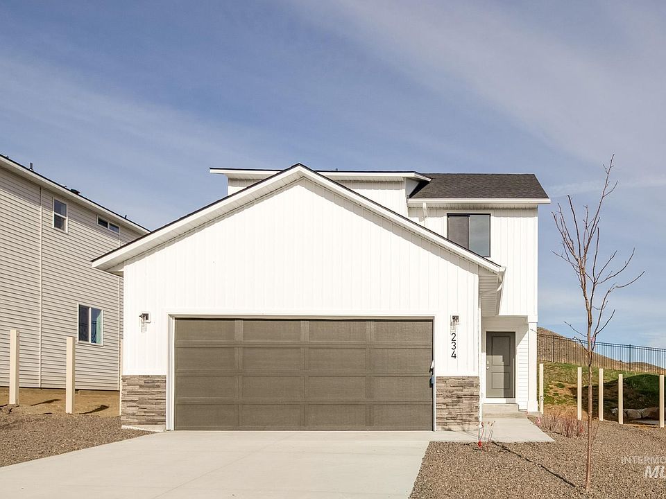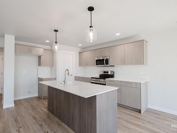 Get up to $30K now thru 11/30/2025 with the Festival of Homes Promo! This new home located in beautiful Kuna, Idaho has all the comforts you need & more! The Hugo 1650 is endearingly charming and reassuringly practical. The main level welcomes occupants and guests alike with open and friendly living spaces. The kitchen comes with stainless steel appliances and stylish solid surface countertops, adding both functionality and aesthetics to the kitchen. Easy access to the yard is just right outside of the dining room. Head upstairs where a primary suite spans the entire rear of the home and contains a walk-in closet and spacious en suite bathroom. The two other bedrooms and the laundry room are also situated upstairs along with a full bathroom. The garage offers plenty of space to park cars and toys or use as storage. A versatile layout provides endless possibilities for customizing the home to suit your needs. With thoughtful touches throughout, the Hugo is designed to enhance your lifestyle. You'll quickly feel right at home. Photos are similar. All selections are subject to change without notice, please call to verify.