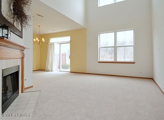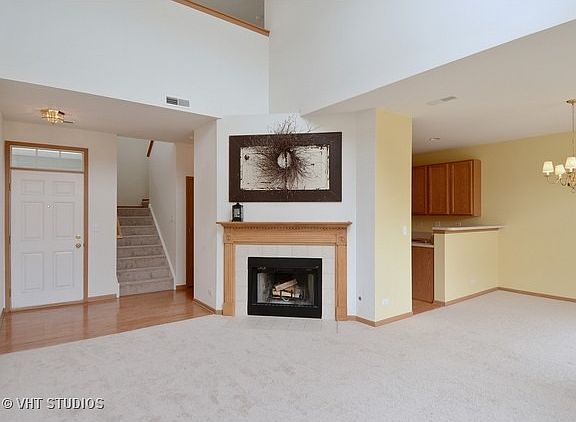 Fantastic townhome in desirable Harvest Hills of St. Charles backing to open space. Open flr plan, fresh, bright. 2 car garage. Newly painted. Living rm w/ beautiful gas fireplace, 2 story wall of windows. Formal dining rm w/ sliding glass door to patio. Kit w/ all app, h/w flr. 1st flr laundry. Loft area. Lge mstr b/r w/ 2 closets. Close to shopping, dining, Otter Cove waterpark, dog park, and more! Quick close.