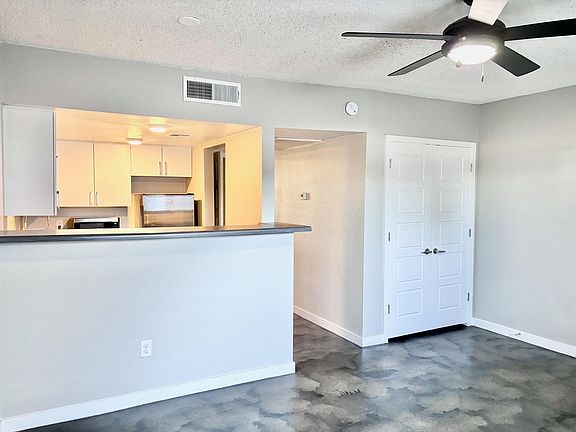 Discover the modern comfort of our renovated interiors, featuring stainless steel appliances, practical epoxy concrete flooring, in-suite washer-dryer units, contemporary countertops, spacious closets, ceiling fans throughout, and updated kitchen cabinets and baths.