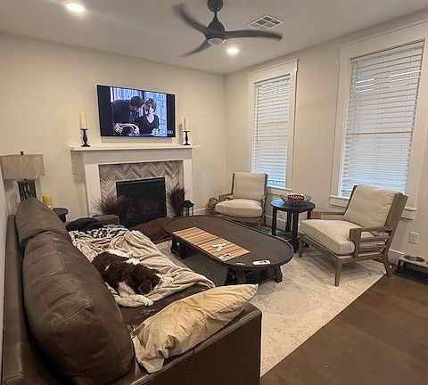 Brand new home completed earlier this year. This a great roommate plan as each bedroom is private on each floor with a private bathroom. Only 15 minutes from the OU Campus. It's within walking distance to Sip at Selah Coffee Bar and Pryor's Pizza. This place is very private with a large front porch overlooking a natural forested area. It will be your private escape from the City even though it's only moments away from it.