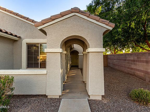 Welcome to this beautifully designed single-story home in one of Gilbert's most sought-after neighborhoods. Featuring 3 spacious bedrooms, a versatile den/office with French doors, this residence blends comfort and function. The open floor plan highlights vaulted ceilings, natural light, and easy-care tile flooring. A chef's kitchen offers stainless appliances, abundant cabinetry, and an island breakfast bar for casual meals or entertaining. Retreat to the primary suite with dual sinks and walk-in closet. Outside, the backyard oasis includes a covered patio, pavers, and built-in BBQ—perfect for gatherings year-round. Set on a desirable corner lot close to parks, schools, and dining.
