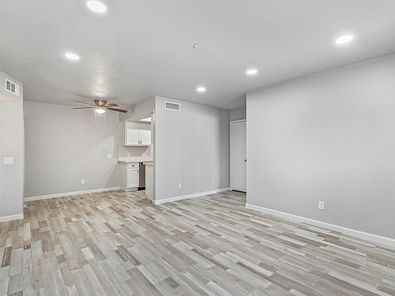 Fresh paintNew flooringNew base trimNewer kitchen cabinetsDouble pane windowsCeiling fansNew bathroom cabinets