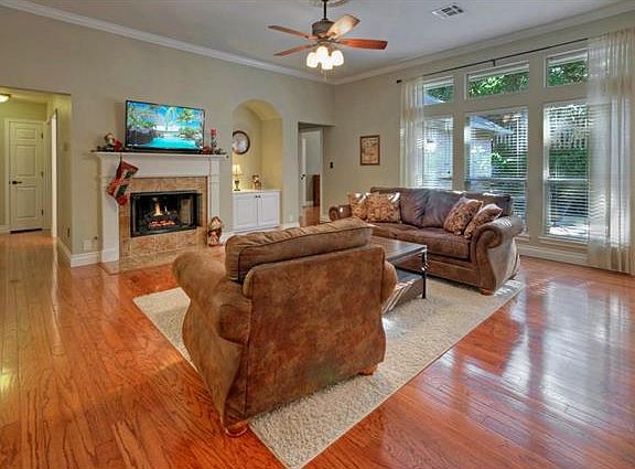 Looking for peace and tranquility, or just an absolutely beautiful one story home on the greenbelt. This home has both! Private backyard. Open floor plan with lots of natural light! High ceilings and crown molding compliment the home. Wood flooring and hard tile throughout. Kitchen open to living room, with a wonderful wall of windows looking out to the beautifully landscaped yard. Large workbench and extra storage in the garage are a bonus to many. Less than 1/2 block to the trail head. Welcome Home!